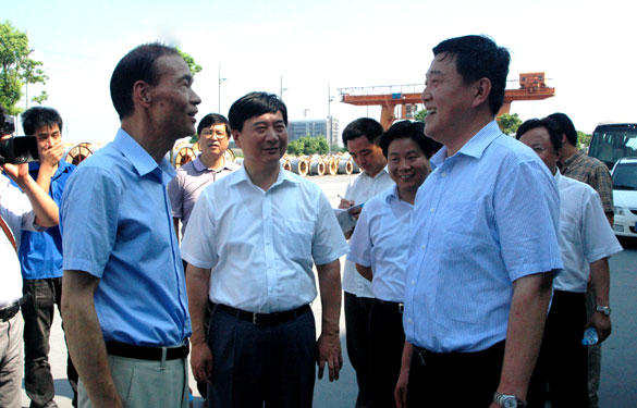8月7日,常州市代市長姚曉東一行在溧陽市委書記盛建良、代市長蘇江華等領導陪同下來江蘇上上電纜集團視察。集團董事長、總經(jīng)理丁山華等陪同姚市長一行參觀了西廠區(qū)生產(chǎn)現(xiàn)場。
